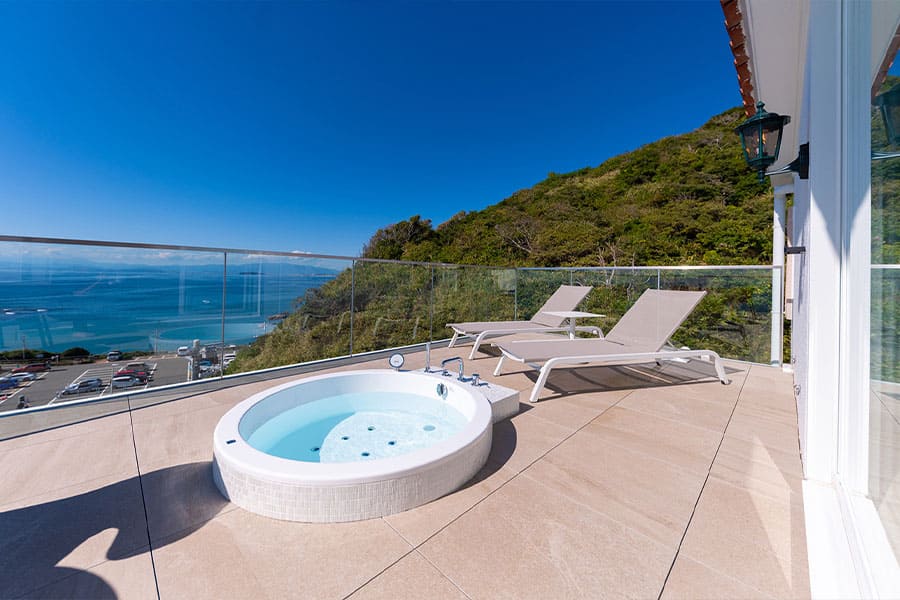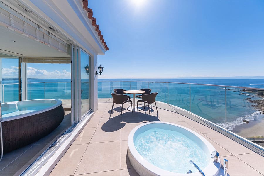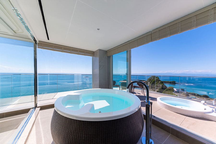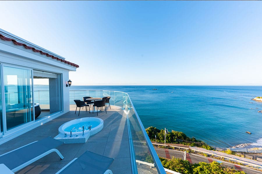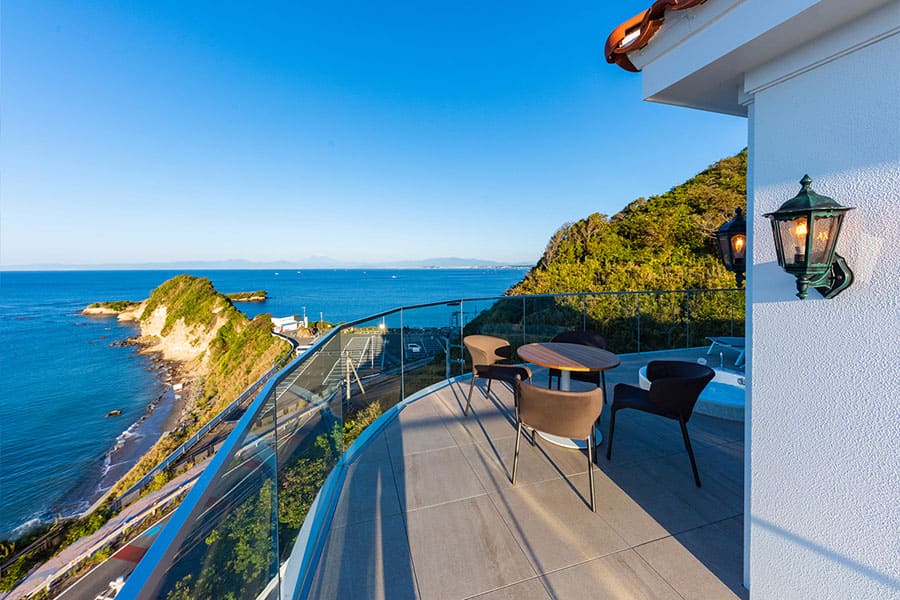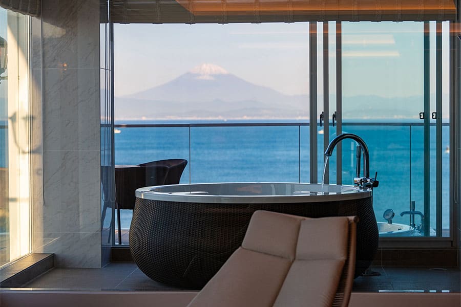 窓一面に広がる大海原、最上階角部屋から望む富士山・伊豆半島・箱根連山・三浦半島といった180度の大パノラマが、非日常の世界へと誘います。