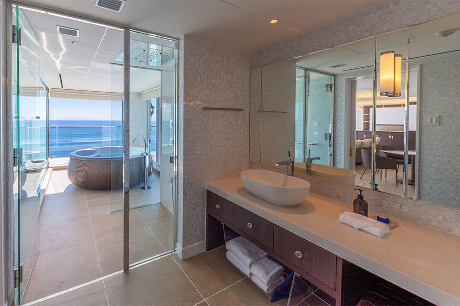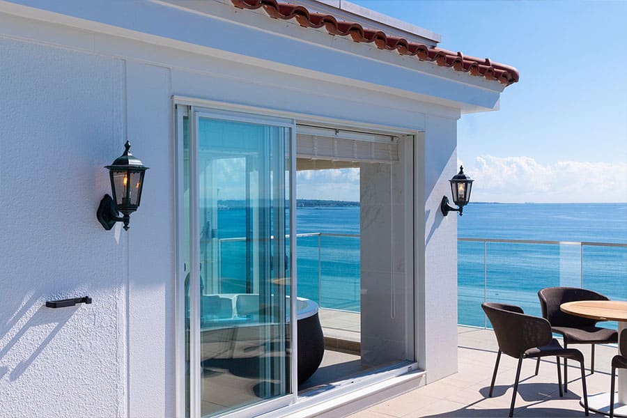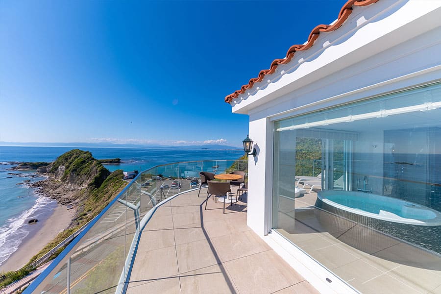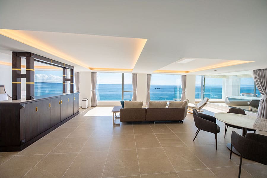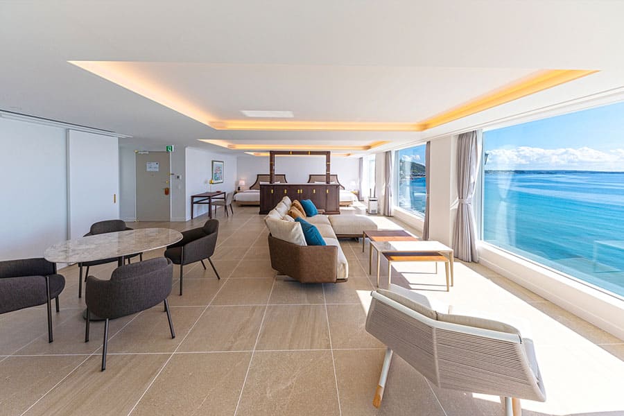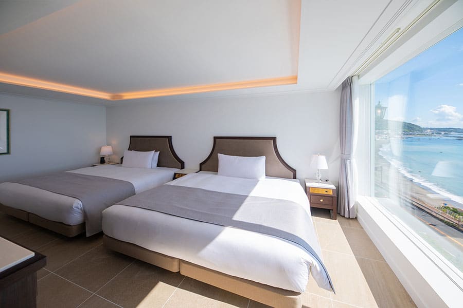 窓一面に広がる大海原、最上階角部屋から望む富士山・伊豆半島・箱根連山・三浦半島といった180度の大パノラマが、非日常の世界へと誘います。